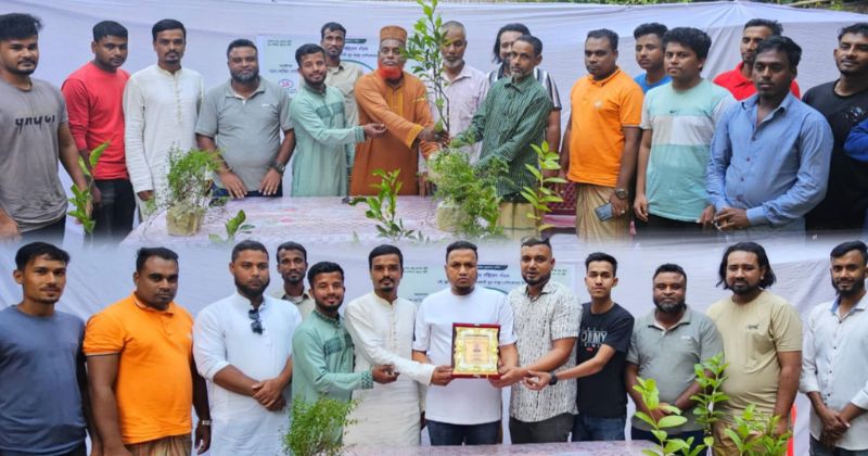 বিশ্বনাথে ইসলামী যুব সংস্থা তেলিকোনার গাছের চারা বিতরণ ও প্রবাসী সংবর্ধনা