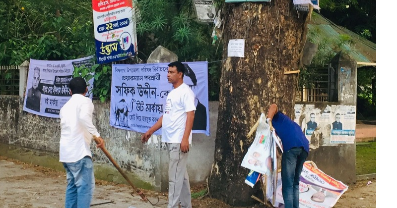 বিশ্বনাথে অভিযানে ব্যানার-ফেস্টুন অপসারণ