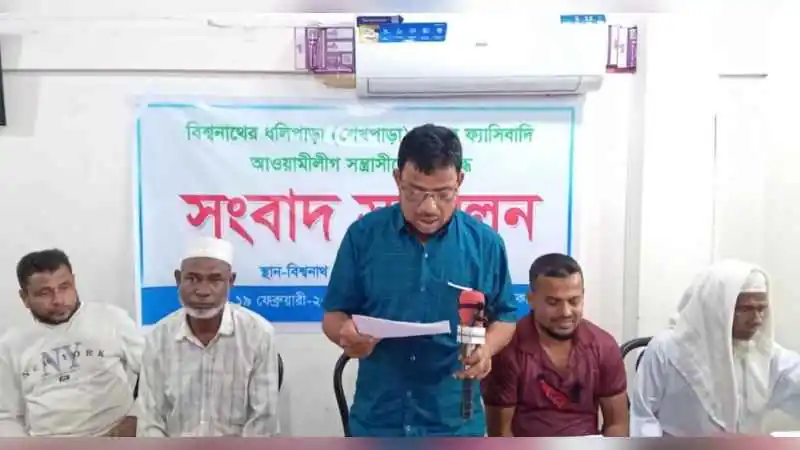 সংবাদ সম্মেলনে লিখিত বক্তব্য পাঠ করেন ভুক্তভোগী পরিবারের ফিরোজ মিয়া। বক্তব্যে তিনি বলেন, ২০২৩সালে ধলিপাড়া শেখপাড়া গ্রামের জামে মসজিদের ভারপ্রাপ্ত মোতাওয়াল্লী ও (ক্যাশিয়ার) ছালেক মিয়ার কাছে মসজিদের হিসাব-নিকাশ জানতে চাই। ক্যাশিয়ারের কাছে কেন হিসাব চাওয়া হল-এই ক্ষোভে ছালেক মিয়া আমাদের উপর বারবার হামলা ও সাজানো মামলা দিয়ে বাড়িঘর থেকে উচ্ছেদের চেষ্টা করছেন। তিনি আমাদেরকে মসজিদে নামাজ পড়তে বাঁধা দিয়ে চলাচলের রাস্তা বন্ধ করে দেন। ৫ মাস বাড়িতে নামাজ পড়ি আমরা কয়েকটি পরিবার। তাদের ভয়ে ছেলেমেয়েরা পড়ালেখার জন্য স্কুল-কলেজে যেতে পারছে না। সাজানো মামলার হাজিরা দিতে আদালতে গেলেও হামলার শিকার হতে হয়। আওয়ামীলীগ সন্ত্রাসী পরিবার এতই প্রভাবশালী যে, তাদের টাকার কাছে বিক্রি হয়ে গেছে থানা পুলিশও। হামলার শিকার হয়ে থানায় আমরা মামলা দিতে গেলে পুলিশ মামলা না নিয়ে উল্টো আমাদের বিরুদ্ধে মামলা নেয়। গ্রেপ্তার করতে বাড়ি ঘরে অভিযান দেয় পুলিশ। পুলিশের ভয়ে বাড়িঘর ত্যাগ করলে সেই সুযোগে বাড়ির বিদ্যুৎ লাইন বন্ধ করে বিদ্যুতের তার খুলে নিয়ে যায় সন্ত্রসীরা। আমাদেরকে দেশের বিভিন্ন থানায় সাজানো মামলা দিয়ে ফাঁসানোসহ নানা ভয়ভীতি প্রদর্শন করছে তারা। আমরা চরম নিরাপত্তাহীনতায় ভুগছি। ডাকাতি মামলার আসামি আনসার মিয়া, আওয়ামীলীগ নেতা ও মানব পাচারকারী আশিক মিয়া ও আখলিস মিয়া লোকজনকে বলে বেড়াচ্ছেন আমাদের দেশের বিভিন্ন থানায় হত্যা, মাদক, নারী দিয়ে সাজানো মামলা দিয়ে আমাদেরকে নিঃশেষ করে ছাড়বে। আমরা পুলিশের উর্ধ্বতন কর্তৃপক্ষের দৃষ্টি আকর্ষণ করছি।